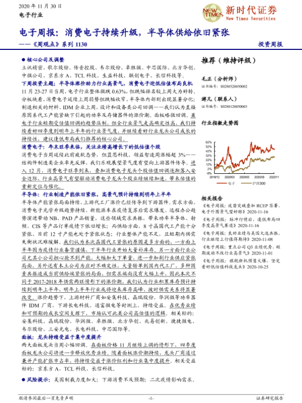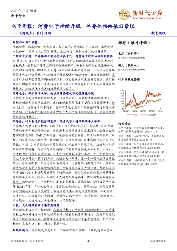 【新时代证券】【20201130】电子周报:消费电子持续升级,半导体供给依旧紧张-17页