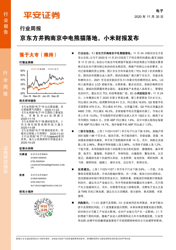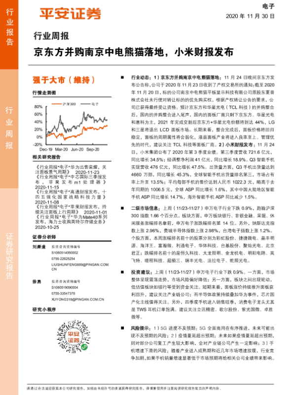 【平安证券】【20201130】20201130-平安证券-电子行业周报:京东方并购南京中电熊猫落地,小米财报发布-5页