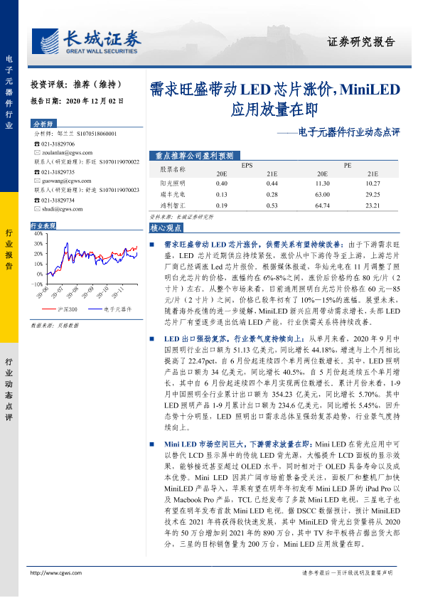 【长城证券】【20201202】电子元器件行业动态点评:需求旺盛带动LED芯片涨价,MiniLED应用放量在即-3页