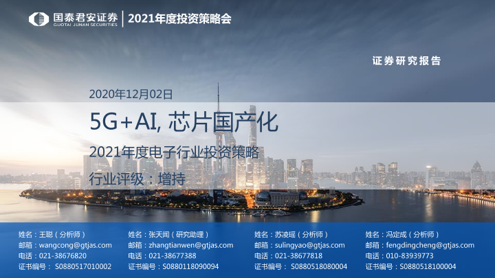 【国泰君安证券】【20201202】2021年度电子行业投资策略:5G+AI,芯片国产化-133页