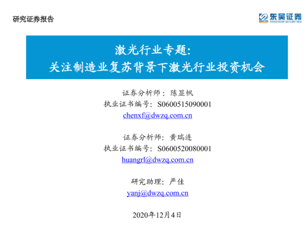 【东吴证券】【20201204】激光行业专题:关注制造业复苏背景下激光行业投资机会-56页
