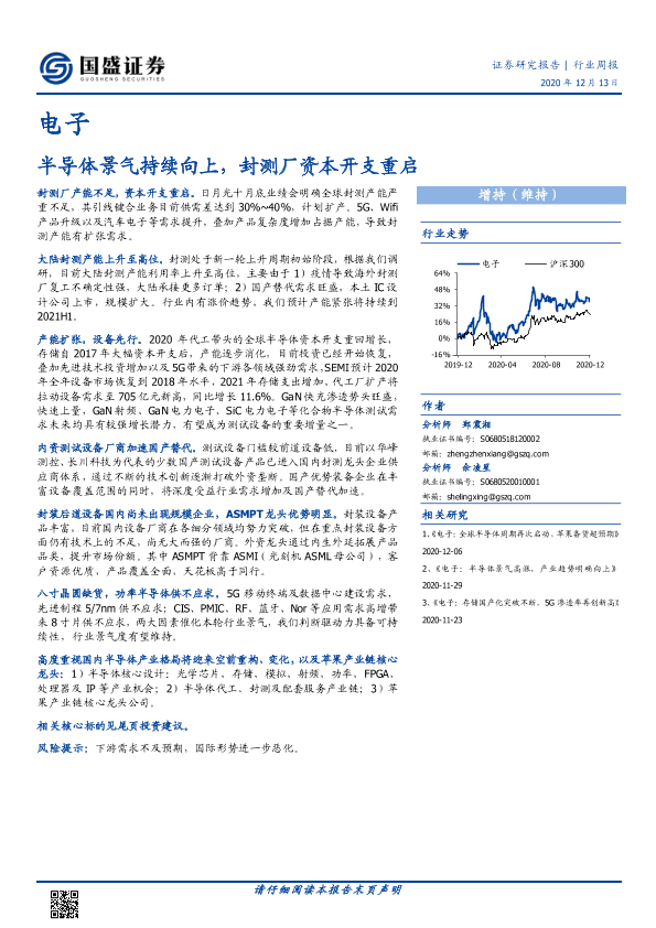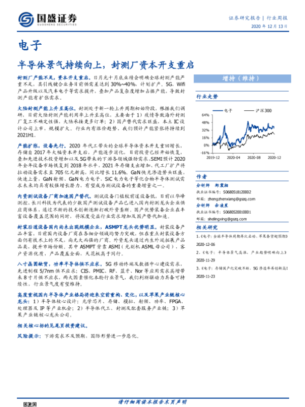 【国盛证券】【20201213】电子行业周报:半导体景气持续向上,封测厂资本开支重启-23页