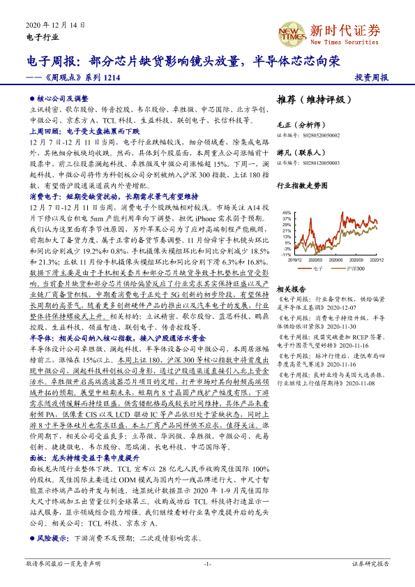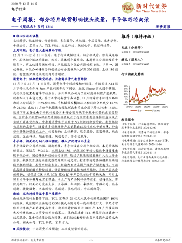 【新时代证券】【20201214】电子周报:部分芯片缺货影响镜头放量,半导体芯芯向荣-17页
