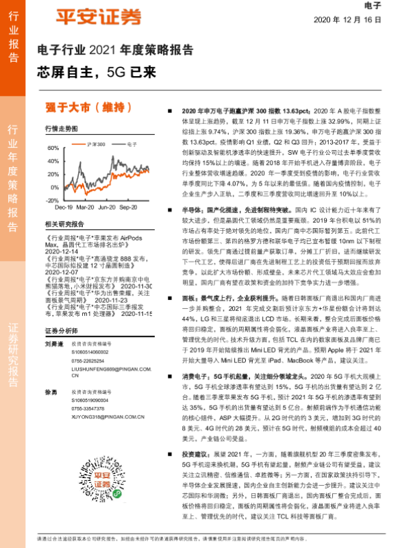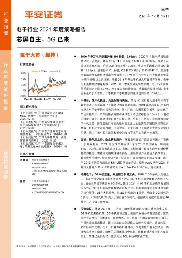 【平安证券】【20201216】电子行业2021年度策略报告:芯屏自主,5G已来-36页