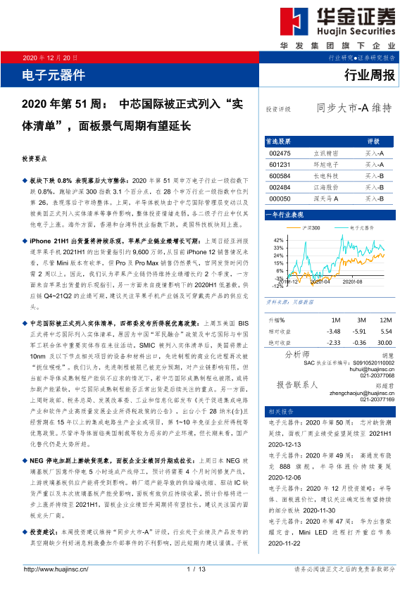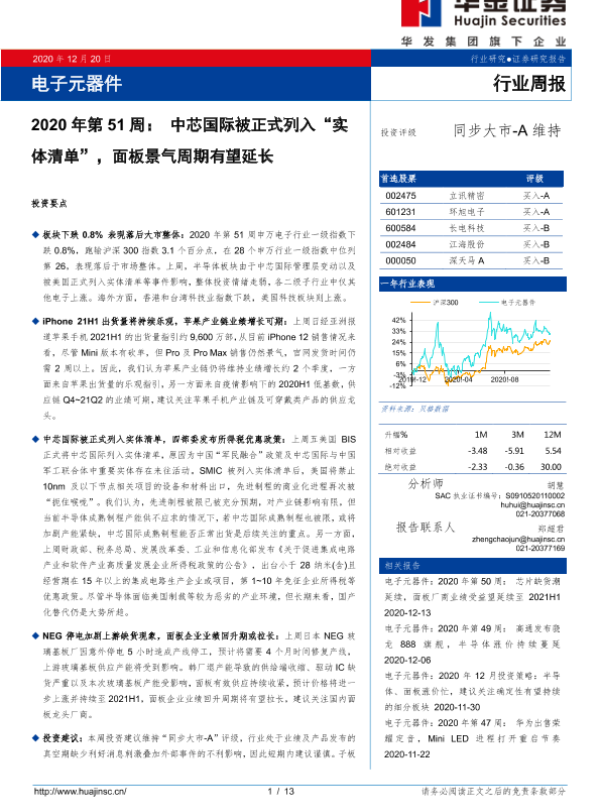 【华金证券】【20201220】2020年第51周:中芯国际被正式列入“实体清单”,面板景气周期有望延长-13页