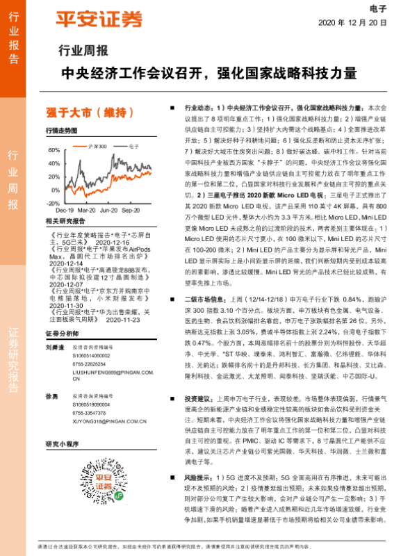 【平安证券】【20201220】20201220-平安证券-电子行业周报:中央经济工作会议召开,强化国家战略科技力量-5页