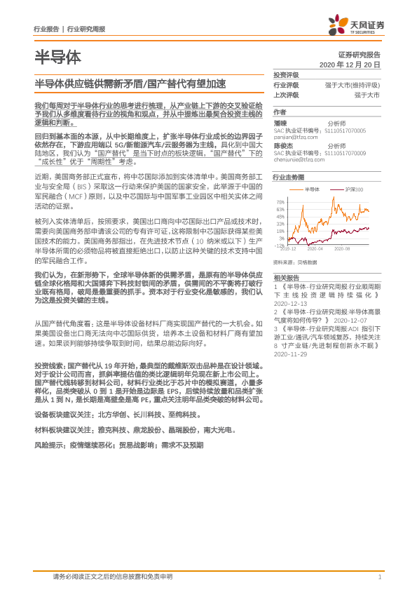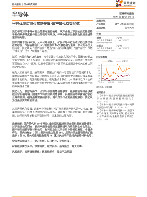 【天风证券】【20201220】半导体行业研究周报:半导体供应链供需新矛盾 国产替代有望加速-23页