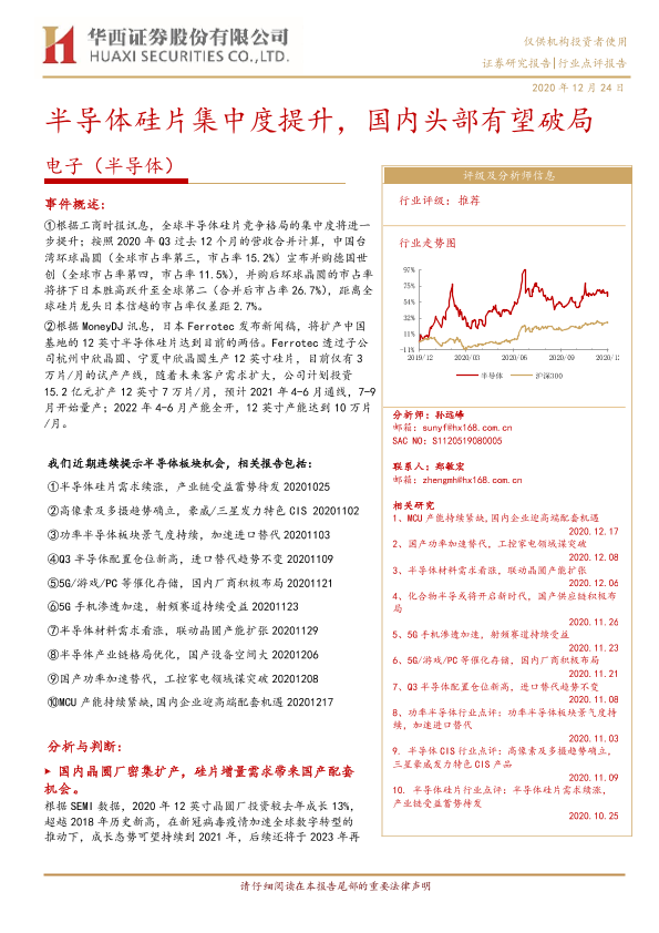 【华西证券】【20201224】电子(半导体)行业:半导体硅片集中度提升,国内头部有望破局-6页