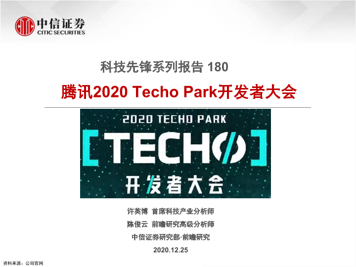 【中信证券】【20201225】腾讯2020 Techo Park开发者大会-27页
