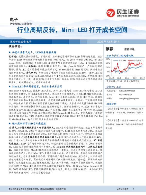【民生证券】【20201225】电子:行业周期反转,Mini LED打开成长空间-28页