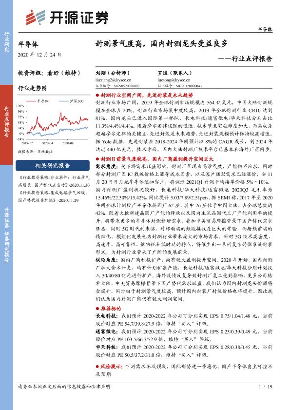 【开源证券】【20201224】20201224-开源证券-半导体行业点评报告:封测景气度高,国内封测龙头受益良多-19页