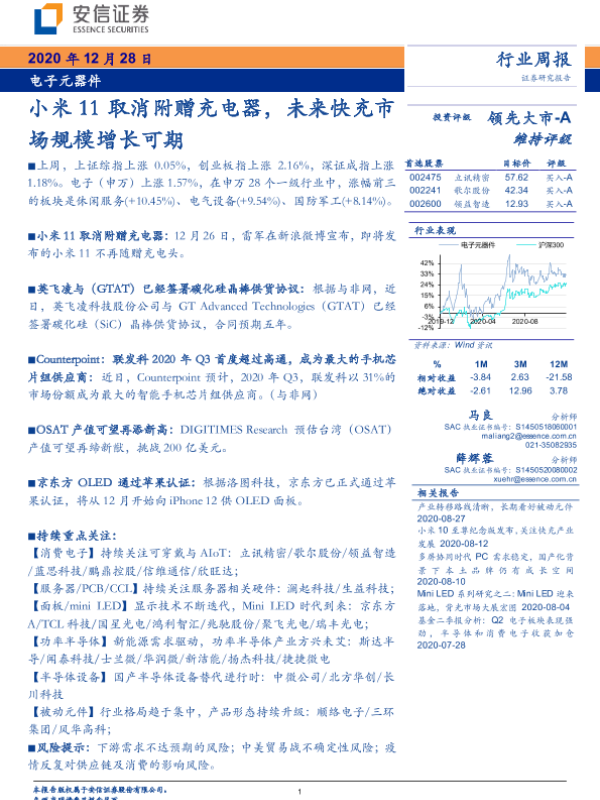 【安信证券】【20201228】20201228-安信证券-电子元器件行业周报:小米11取消附赠充电器,未来快充市场规模增长可期-7页