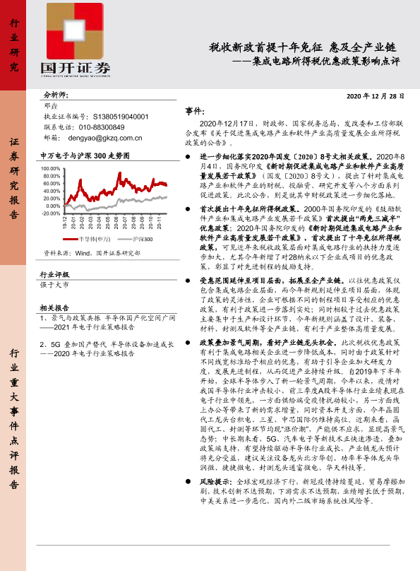 【国开证券】【20201228】税收新政首提十年免征惠及全产业链——集成电路所得税优惠政策影响点评-7页
