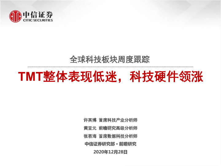 【中信证券】【20201228】全球科技板块周度跟踪:TMT整体表现低迷,科技硬件领涨-34页