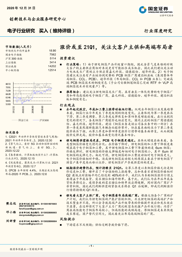 【国金证券】【20201231】20201231-国金证券-电子行业:涨价或至21Q1,关注大客户主供和高端布局者-18页