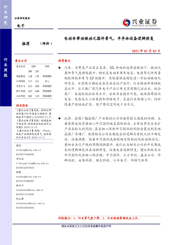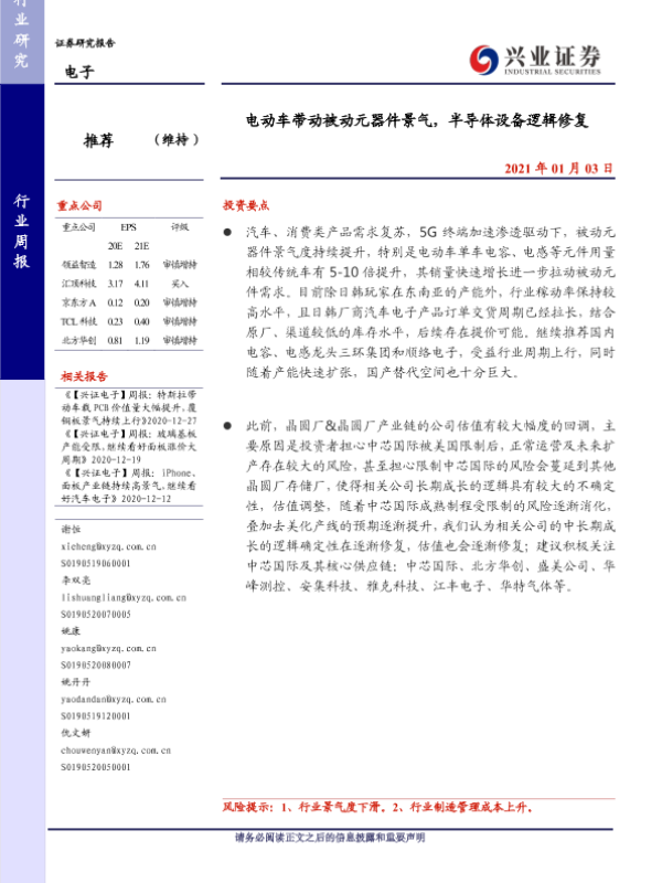【兴业证券】【20210103】20210103-兴业证券-电子行业周报:电动车带动被动元器件景气,半导体设备逻辑修复-8页