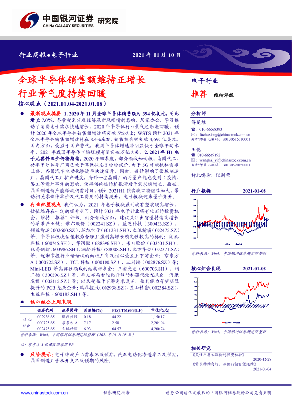 【银河证券】【20210110】20210110-中国银河-电子行业周报:全球半导体销售额维持正增长 行业景气度持续回暖-20页