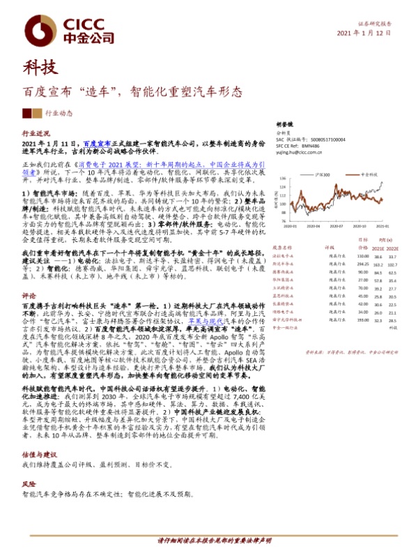 【中金公司】【20210112】百度宣布“造车”,智能化重塑汽车形态-8页