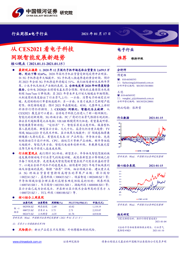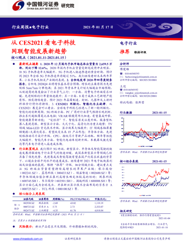 【银河证券】【20210117】电子行业周报:从CES2021看电子科技网联智能发展新趋势-23页