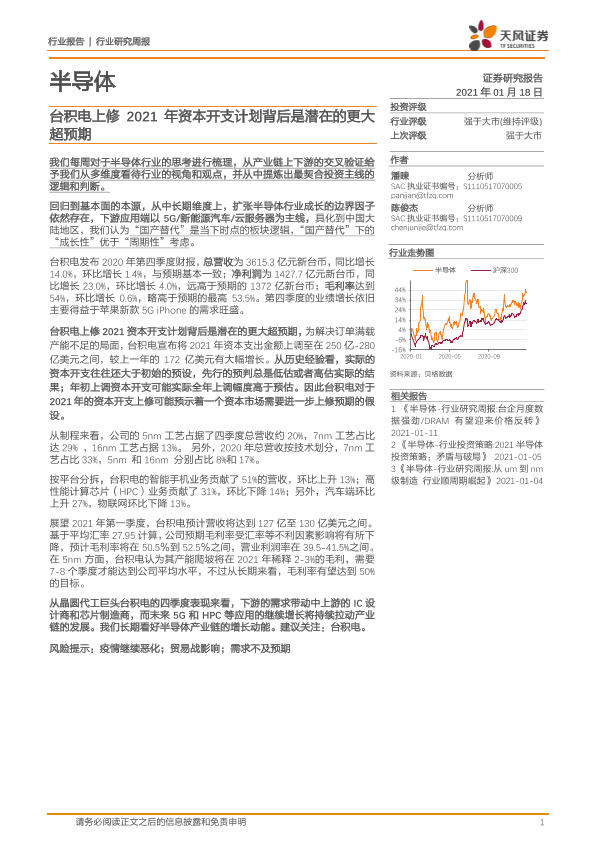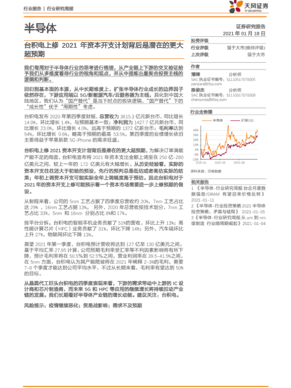 【天风证券】【20210118】20210118-天风证券-半导体行业研究周报:台积电上修2021年资本开支计划背后是潜在的更大超预期-9页