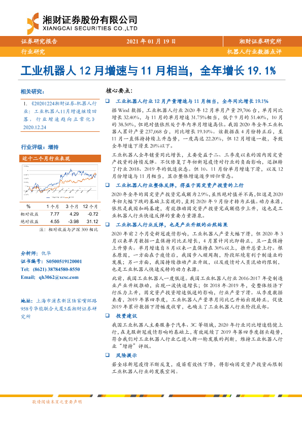 【湘财证券】【20210119】机器人行业数据点评:工业机器人12月增速与11月相当,全年增长19.1%-4页