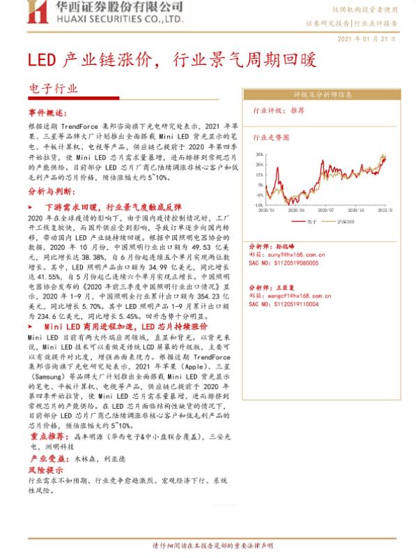 【华西证券】【20210121】LED产业链涨价,行业景气周期回暖-5页