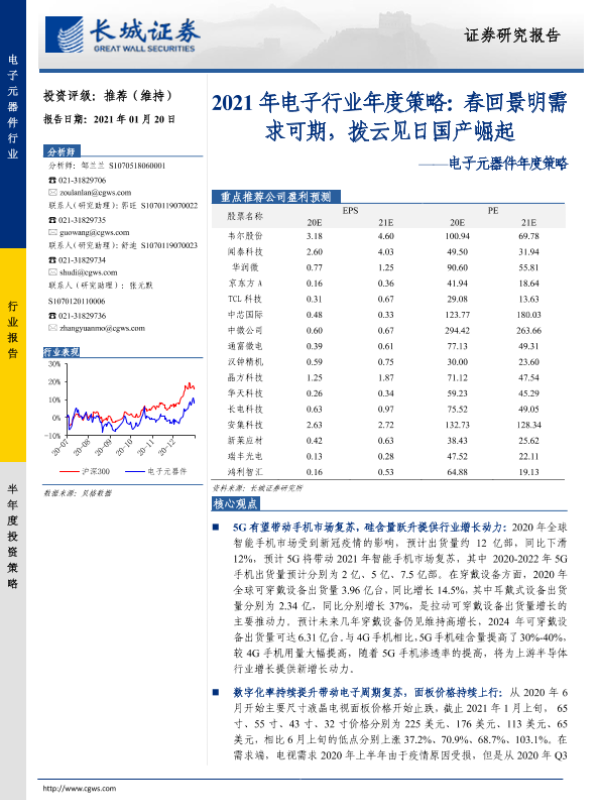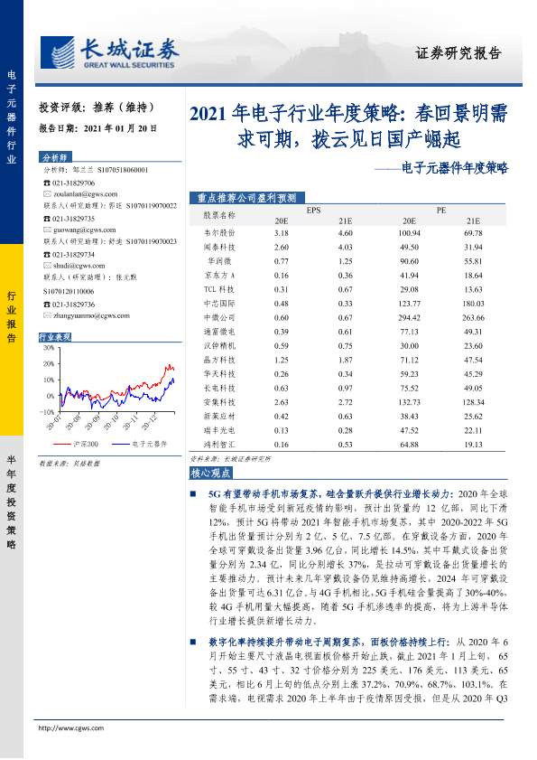【长城证券】【20210120】2021年电子行业年度策略:春回景明需求可期,拨云见日国产崛起-56页