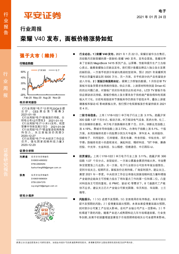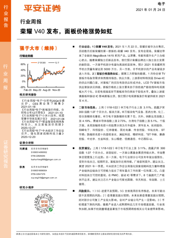 【平安证券】【20210124】20210124-平安证券-电子行业周报:荣耀V40发布,面板价格涨势如虹-5页