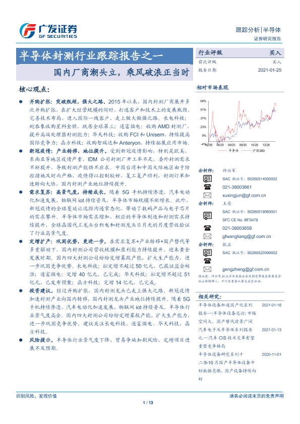 【广发证券】【20210125】20210125-广发证券-半导体封测行业跟踪报告之一:国内厂商潮头立,乘风破浪正当时-13页