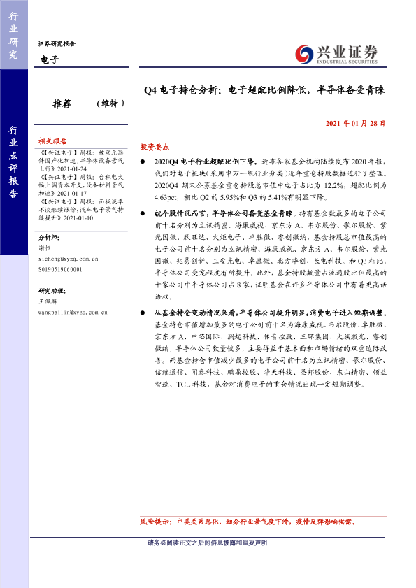【兴业证券】【20210128】Q4电子持仓分析:电子超配比例降低,半导体备受青睐-5页