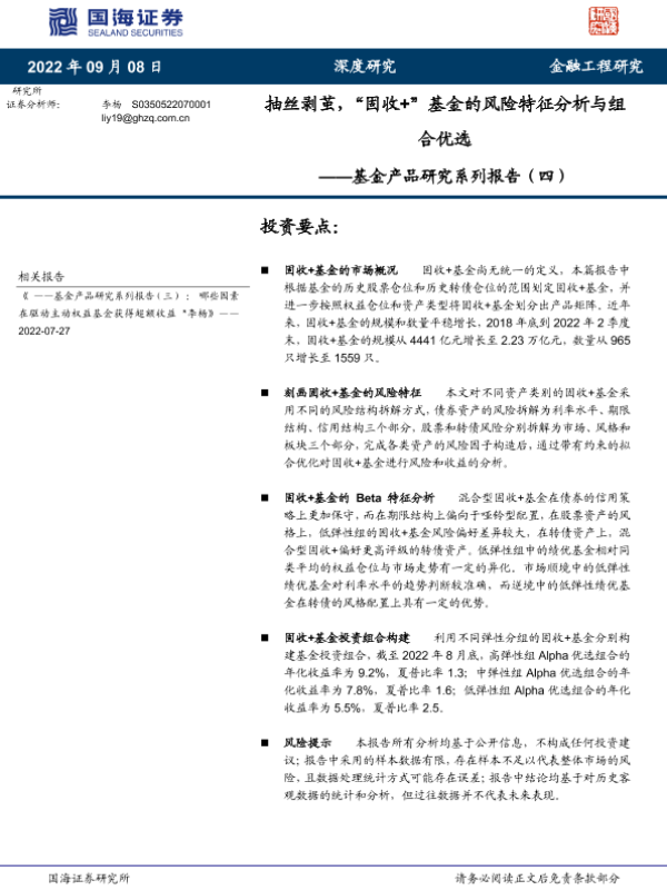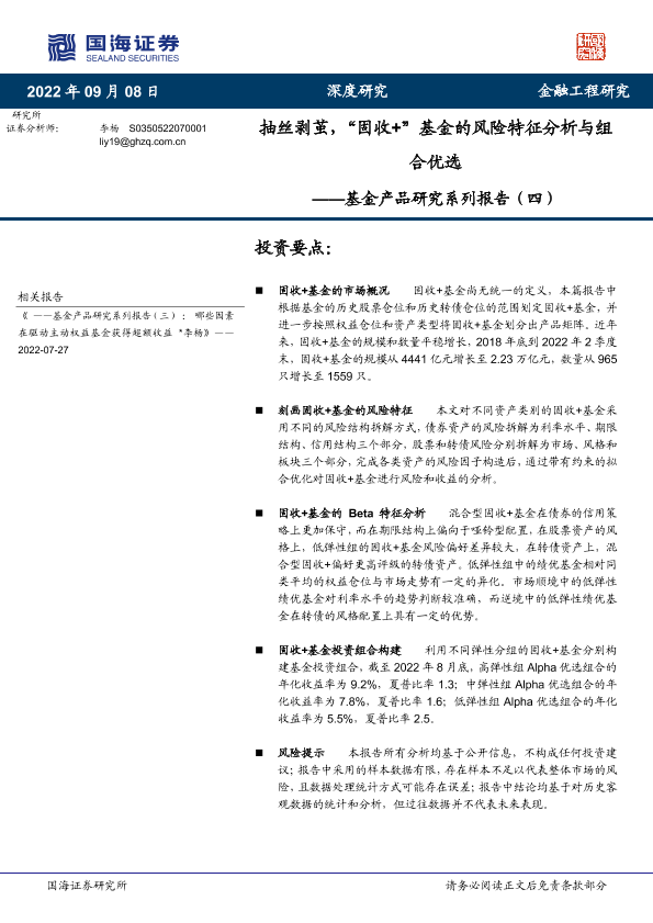【国海证券】【20220908】基金产品研究系列报告(四):抽丝剥茧,“固收+”基金的风险特征分析与组合优选-29页
