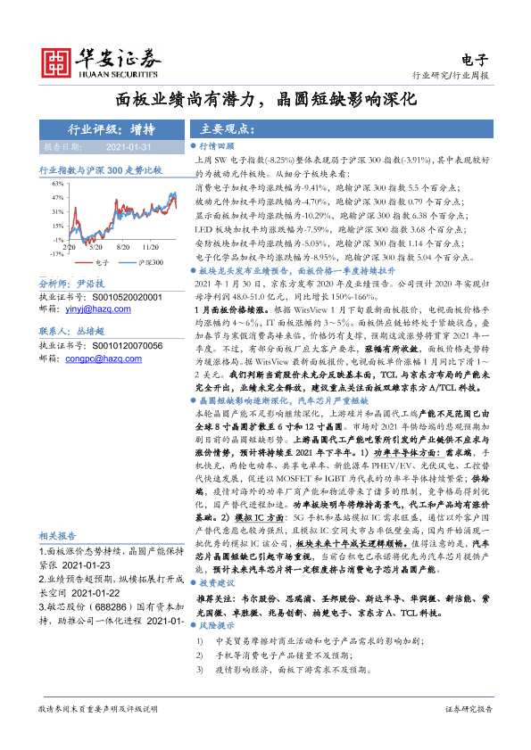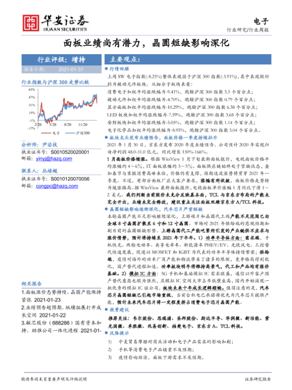 【华安证券】【20210131】20210131-华安证券-电子行业周报:面板业绩尚有潜力,晶圆短缺影响深化-15页