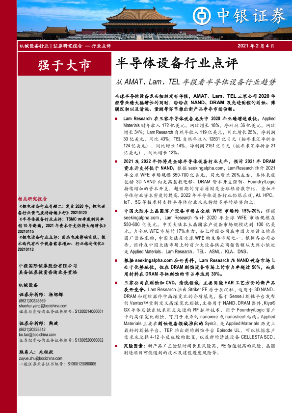 【中银证券】【20210204】从AMAT、Lam、TEL年报看半导体设备行业趋势-4页