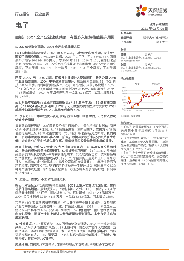 【天风证券】【20210205】面板:20Q4全产业链业绩共振,有望步入板块估值提升周期-4页