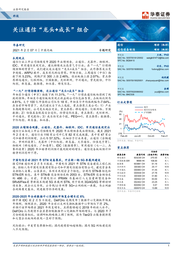 【华泰证券】【20210207】科技:关注通信“龙头+成长”组合-18页