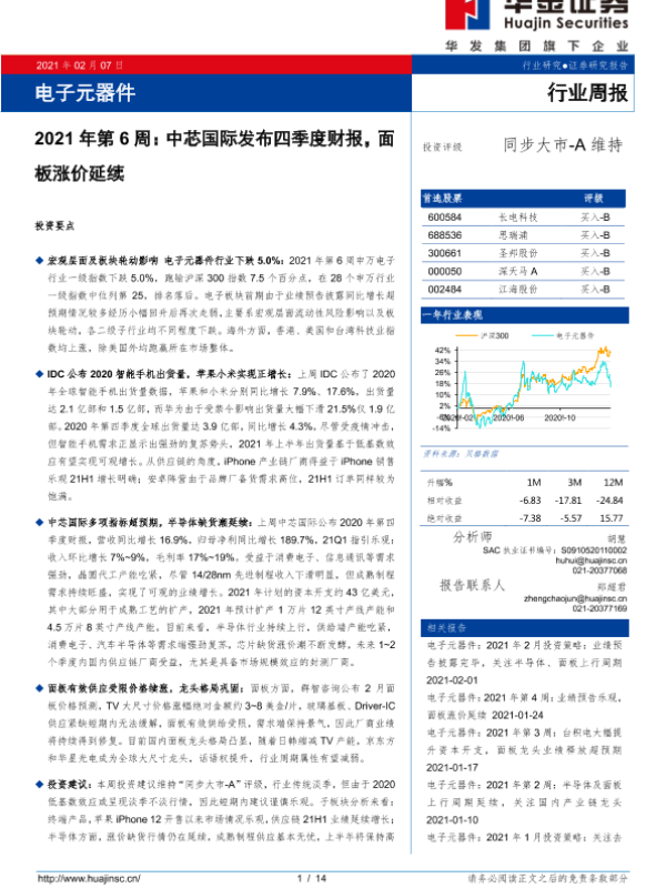 【华金证券】【20210207】2021年第6周:中芯国际发布四季度财报,面板涨价延续-14页