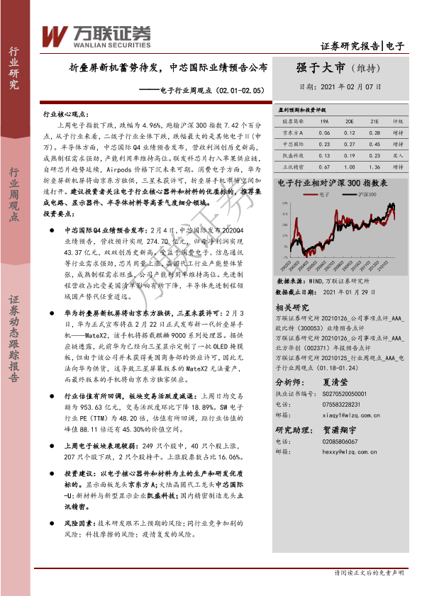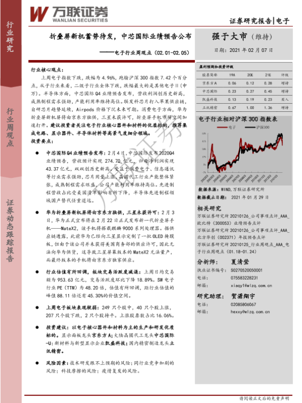 【万联证券】【20210207】20210207-万联证券-电子行业周观点:折叠屏新机蓄势待发,中芯国际业绩预告公布-14页