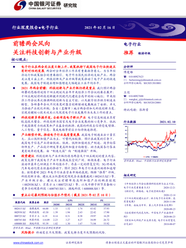 【银河证券】【20210216】电子行业深度报告:前瞻两会风向 关注科技创新与产业升级-35页