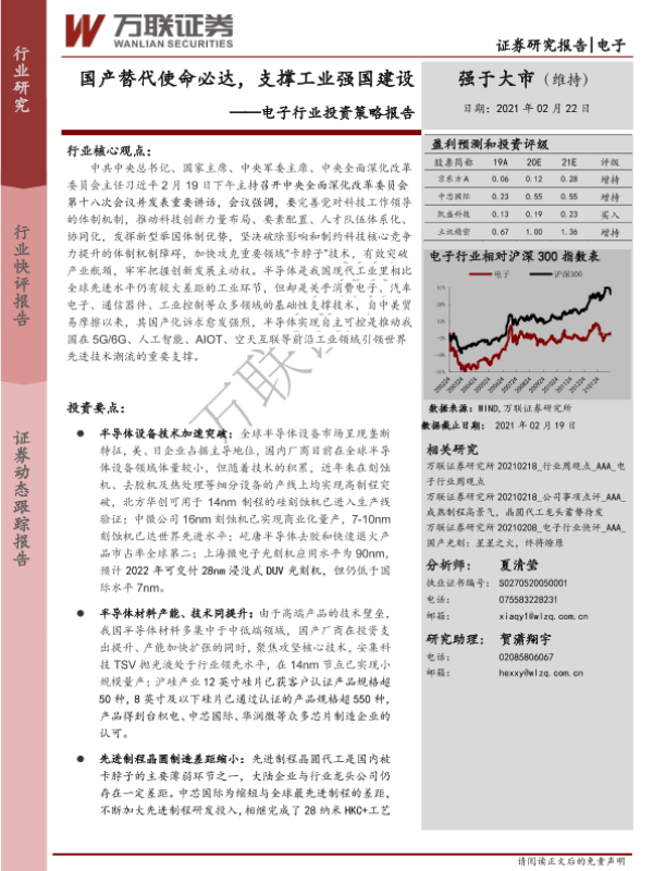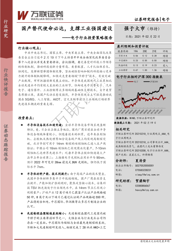【万联证券】【20210222】电子行业投资策略报告:国产替代使命必达,支撑工业强国建设-3页