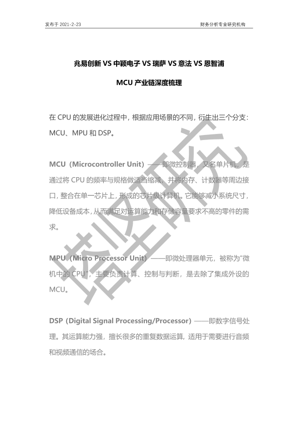 【并购优塾】【20210223】兆易创新VS中颖电子VS瑞萨VS意法VS恩智浦:MCU产业链梳理-35页