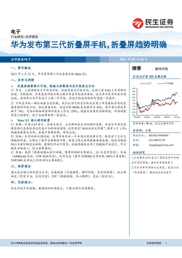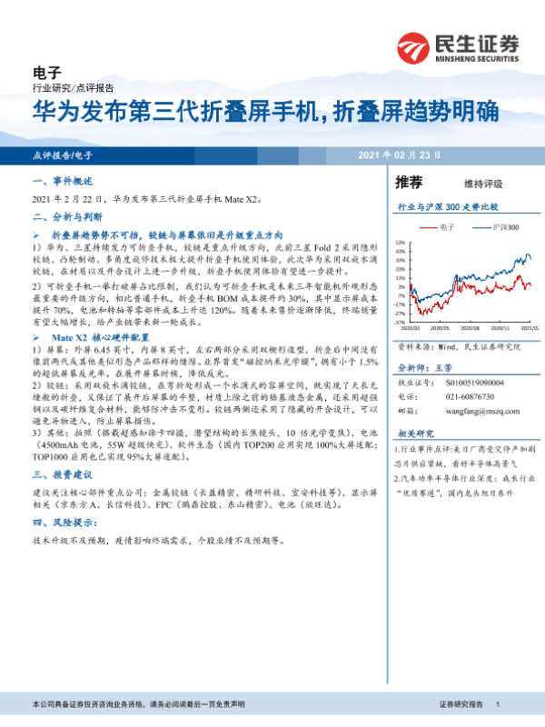 【民生证券】【20210223】20210223-民生证券-电子行业研究:华为发布第三代折叠屏手机,折叠屏趋势明确-4页