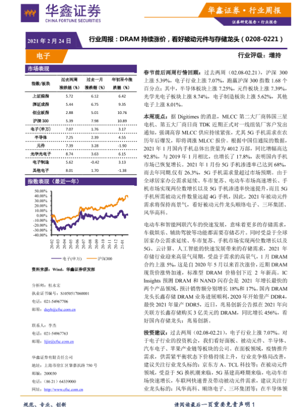 【华鑫证券】【20210224】20210224-华鑫证券-电子行业周报:DRAM持续涨价,看好被动元件与存储龙头-14页