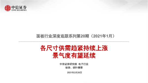 【中信证券】【20210226】面板行业深度追踪系列第20期(2021年1月):各尺寸供需趋紧持续上涨,景气度有望延续-22页