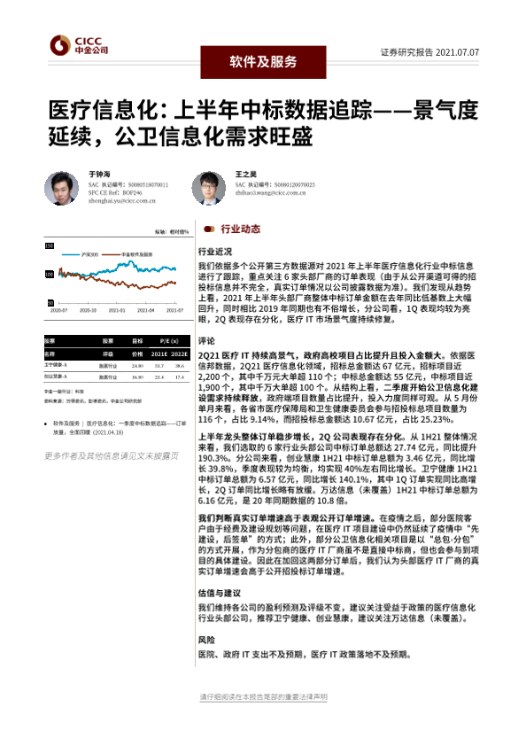 【中金公司】【20210707】软件及服务行业医疗信息化:上半年中标数据追踪,景气度延续,公卫信息化需求旺盛-13页