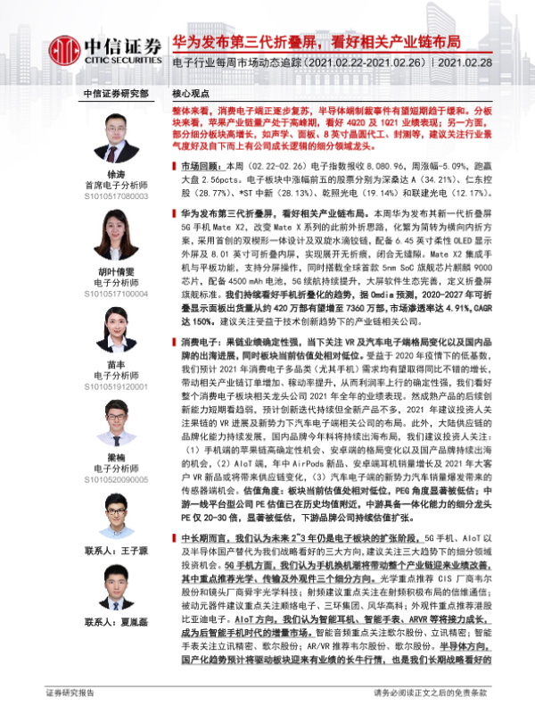 【中信证券】【20210228】20210228-中信证券-电子行业每周市场动态追踪:华为发布第三代折叠屏,看好相关产业链布局-16页