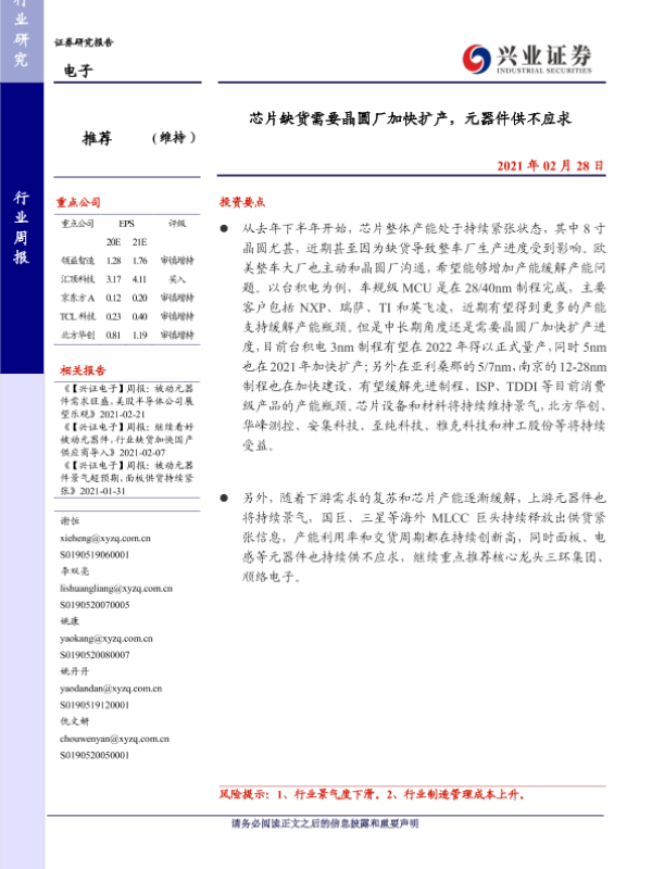 【兴业证券】【20210228】芯片缺货需要晶圆厂加快扩产,元器件供不应求-8页