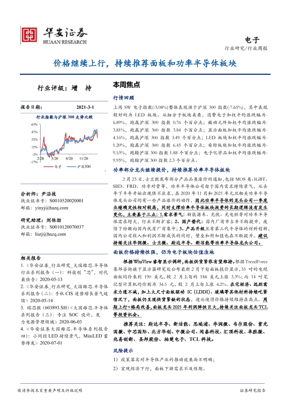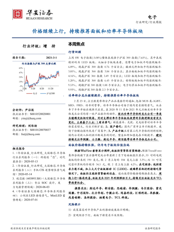 【华安证券】【20210301】20210301-华安证券-电子行业周报:价格继续上行,持续推荐面板和功率半导体板块-19页