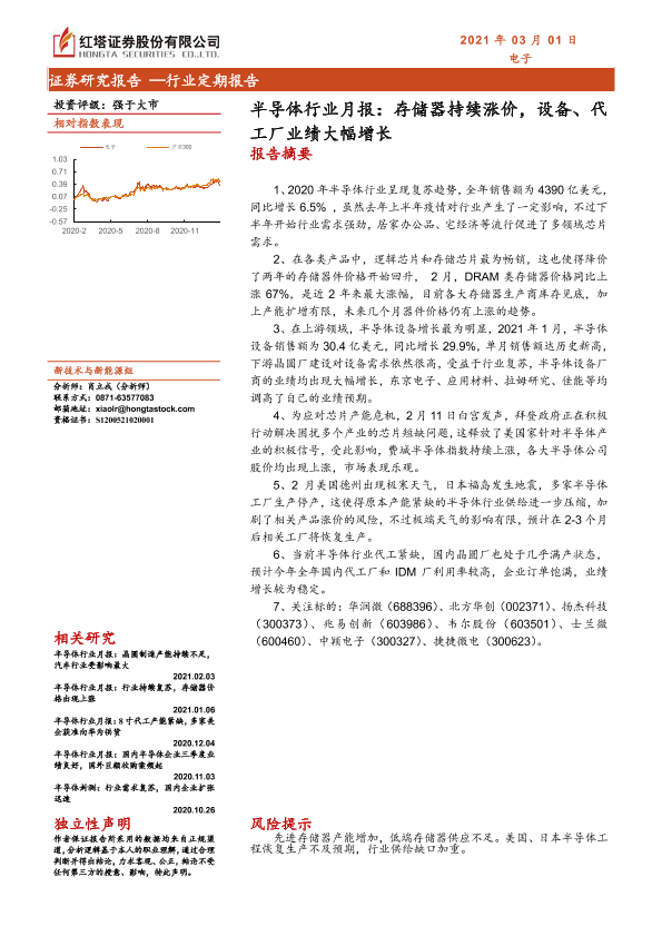 【红塔证券】【20210301】半导体行业月报:存储器持续涨价,设备、代工厂业绩大幅增长-18页