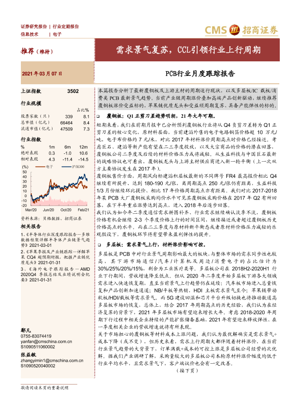 【海通证券】【20210307】PCB行业月度跟踪报告:需求景气复苏,CCL引领行业上行周期-17页