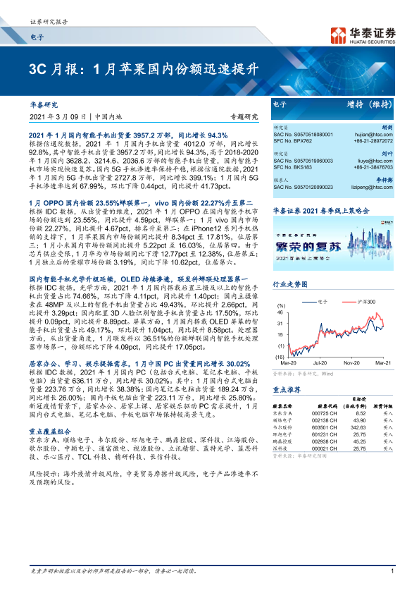 【华泰证券】【20210309】电子3C月报:1月苹果国内份额迅速提升-16页